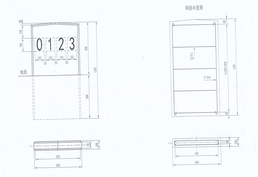3) 標(biāo)樁分為兩種類型。A型標(biāo)樁采用鋼筋混凝土板制作,直接埋入士層中。B型標(biāo)樁采用鋼筋混凝土立柱及標(biāo)牌制作,埋設(shè)于混凝土基礎(chǔ)中。